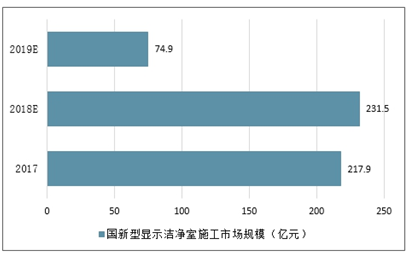 2017-2019年我国新型显示洁净室施工市场规模(亿元)
