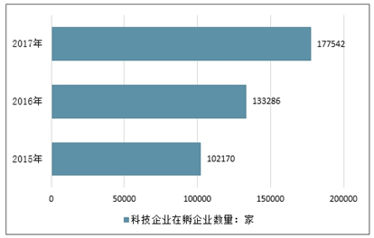 2015-2017年中国科技企业在孵企业数量情况