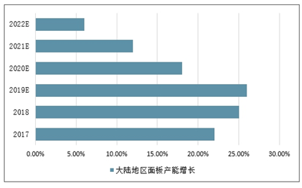 2016-2022年大陆地区面板产能增长预测