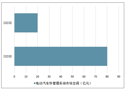电动汽车热管理系统市场空间2020年预计可达80亿元-,2025年预计可达200亿元。