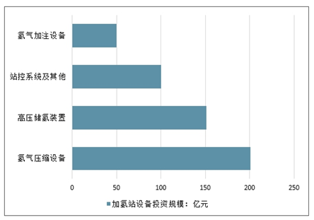具体来看,以外供氢气作为氢源的加氢站,设备方面的投资主要在于氢气压缩设备(40%)和高压储氢装置(30%),其他还包括站控系统和加注设备等;估算到2030年各类设备投资规模分别为,氢气压缩设备(201亿)、高压储氢装置(151亿)、站控系统及其他(100亿)、氢气加注设备(50亿)。