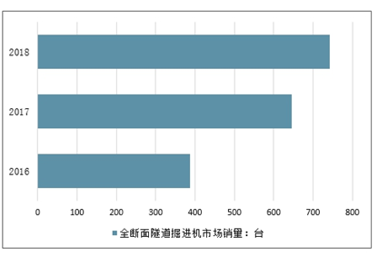 2016-2018年中国全断面隧道掘进机市场销量情况