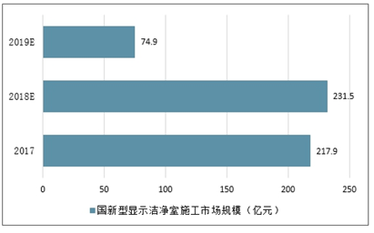 2015-2019年我国新型显示洁净室施工市场规模(亿元