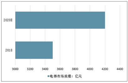 近年来,我国电梯市场规模不断扩大。2019年电梯市场规模突破3500亿元,预计2020年市场规模将超4200亿元。