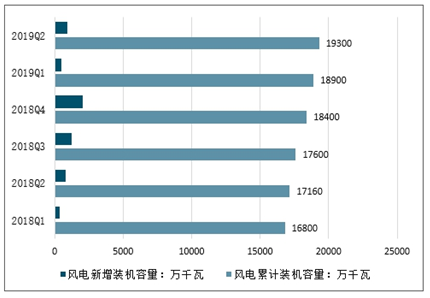 2018-2019年Q2中国风电累计、新增装机容量统计情况