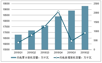 2018-2019年Q2中国风电累计、新增装机容量统计情况