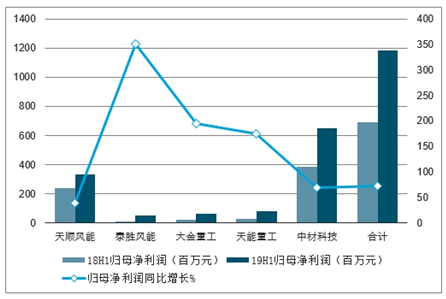 风塔叶片2018-2019年半年度归母净利润对比