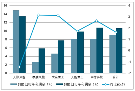 风塔叶片2018-2019年半年度归母净利润率对比