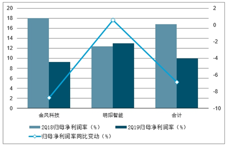 风电风机2018-2019年Q2单季度归母净利润率情况对比