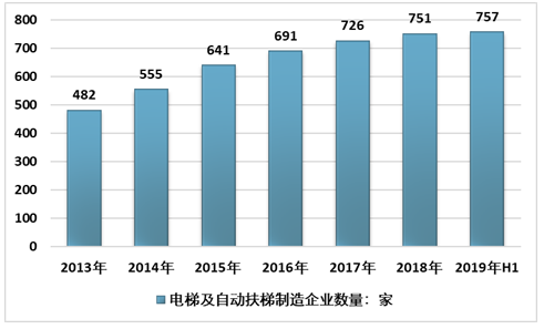 2013-2019年上半年中国电梯及自动扶梯制造企业数量