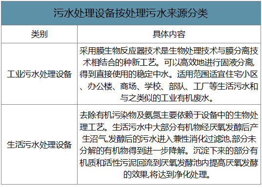 污水处理设备按处理污水的来源可分为工业污水处理设备、生活污水处理设备,前者适用范围适宜住宅小区、办公楼、商场、学校、部队、工厂等生活污水和与之类似的工业有机废水,后者主要满足一般生活污水的处理需求。