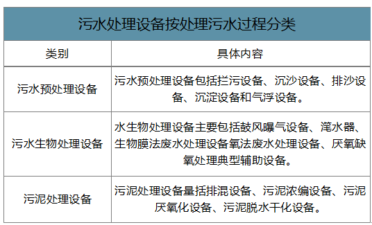 按处理污水的过程不同,污水处理设备还可以分为污水预处理设备,包括拦污设备、沉沙设备等;污水生物处理设备,包括鼓风曝气设备、滗水器等;污泥处理设备,包括排泥设备、污泥浓缩设备等。