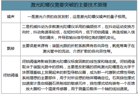 激光陀螺仪需要突破的主要技术原理为噪声、漂移和闭锁阈值