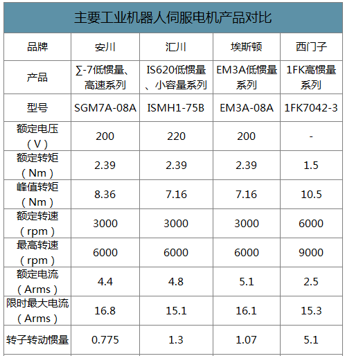 二、2019年中外工业机器人伺服电机产品竞争分析