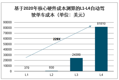 基于2020年核心硬件成本测算的L1-L4自动驾驶单车成本(单位:美元)