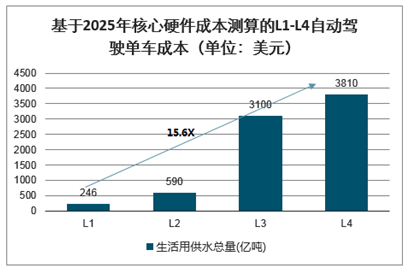 基于2025年核心硬件成本测算的L1-L4自动驾驶单车成本(单位:美元)