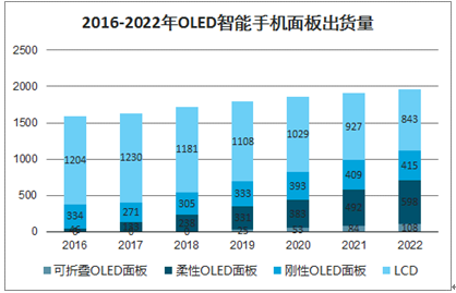 2016-2022年OLED智能手机面板出货量