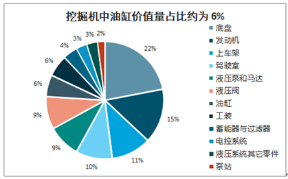 挖掘机中油缸价值量占比约为6%