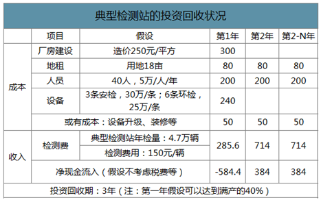 典型检测站的投资回收状况