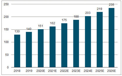 2018年国内质谱仪市场规模约为100亿元。在此基础上,如进一步考虑进口后相关税费、国内市场渠道流通、提供技术服务等环节,初步测算2018年国内质谱仪市场规模约为130亿元。如保守以国际市场年均复合增长率7.70%为基础进行测算,我国2026年质谱仪市场规模将会至少达到235亿元,未来市场前景可期。
