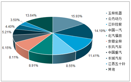2018年前11月中国柴油机前10家企业销量占比