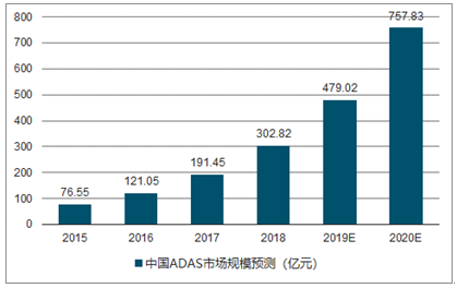 图表 2015-2019年ADAS市场细分产品市场容量统计