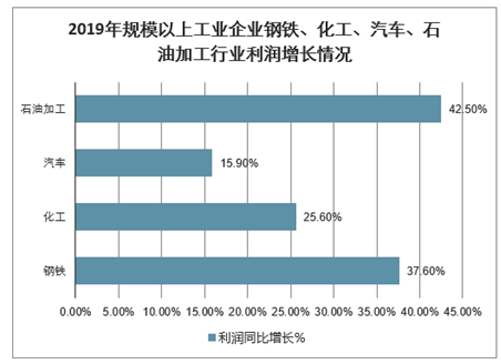 2019年规模以上工业企业钢铁、化工、汽车、石油加工行业利润增长情况