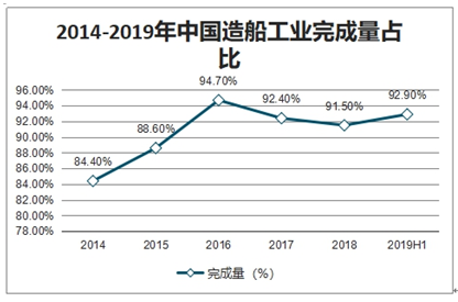2014-2019年中国造船工业完成量占比