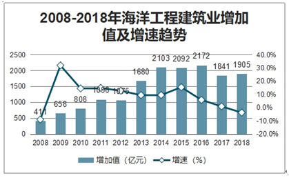 2008-2018年海洋工程建筑业增加值及增速趋势