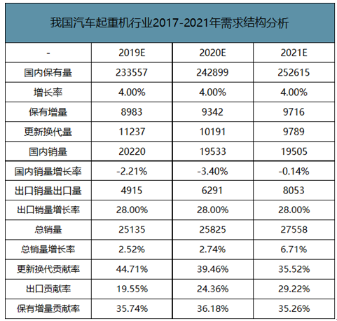 我国汽车起重机行业2017-2021年需求结构分析