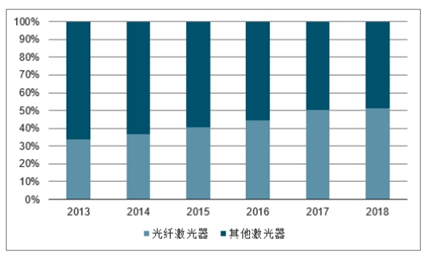 图表7:我国光纤激光器行业产品结构情况(单位:%)