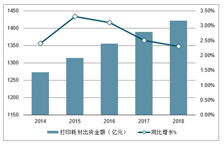 2014-2018年我国打印耗材市场情况(亿元)