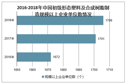 2016-2018年中国初级形态塑料及合成树脂制造规模以上企业单位数情况