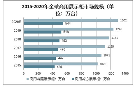 2015-2020年全球商用展示柜市场规模(单位:万台)