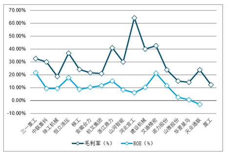 2019年前三季度工程机械行业各企业毛利率及ROE状况(亿元,%)
