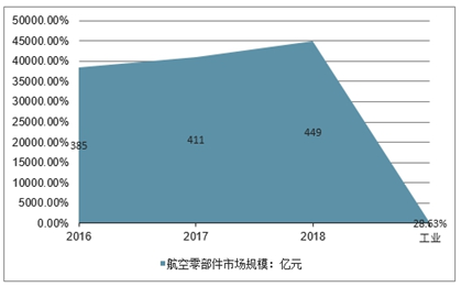 2018年中国航空零部件行业市场规模约为449亿元,较2017年增长了9.25%。