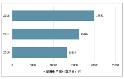 2016-2018年中国超微细电子线材行业需求量情况