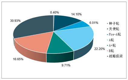 从融资金额来看,据统计,战略投资虽然仅有7笔,但是由于公司发展前景良好,与投资方合作密切等原因,获得的投资金额占比最高,占全部比重的30.93%;由于初期的融资金额较低,虽然天使轮和A轮在融资事件张占据了绝大比重,但在融资金额上比重略小,分别为14.10%和9.71%。