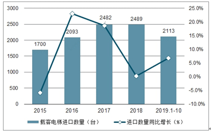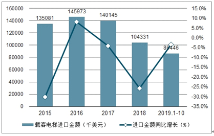 第.一节 2015-2019年中国载客电梯所属行业进口数据分析