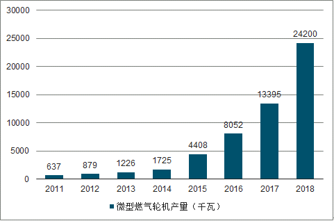 2011-2018年中国微型燃气轮机行业产量情况