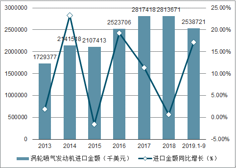 2013-2019年9月中国涡轮喷气发动机进口金额(千美元)