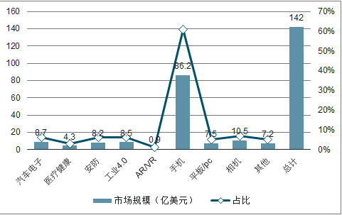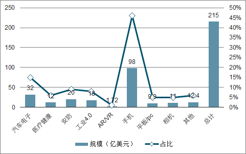 2018CMOS传感器在各应用领域的规模与增速