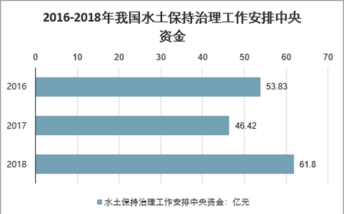 随着绿色环保意识的不断提升,人们意识到生态环境的重要性,加之政府不断加强对于水土流失工作的治理,推动我国水土保持治理工作的进展。2015年,我国水土保持治理工作安排中央资金为55.85亿元,2018年,我国水土保持治理工作安排中央资金为61.80亿元。