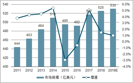2018年全球IC封装测试业在存储、车载芯片与通讯封测需求的带动下小幅增长,2018年销售规模成长1.4%,销售额达到525亿美元。全球移动通信电子产品、高性能计算芯片(HPC)、汽车电子、物联网(IOT)以及5G等产品需求上升、高I/O数和高整合度先进封装迅速发展是带动IC封装测试市场上升的主要原因,预计2019年全球IC封测业市场增速约1.0%。