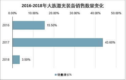 2018年下半年受到经济大环境影响增速放缓。中低功率激光切割设备通常指发射激光的激光器功率小于2000W的设备,其下游应用包括钣金加工、厨具、灯具、机箱机柜、灯饰广告等行业。高功率激光切割设备则广泛应用于3C精密加工,轨道机车、船舶、汽车行业零部件制造,重型机械等场合。