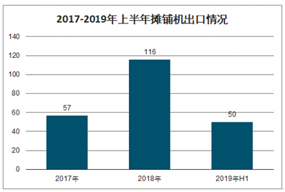 2017-2019年上半年摊铺机出口情况