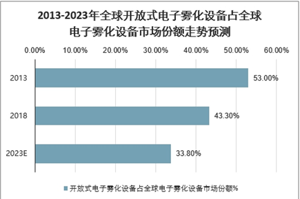 2013-2023年全球开放式电子雾化设备占全球电子雾化设备市场份额走势预测