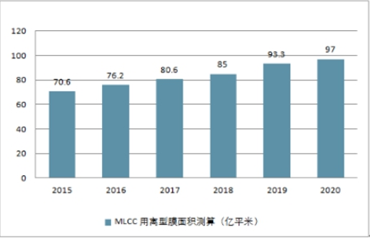 全球 MLCC 用离型膜面积测算(亿平米)