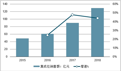 2015-2018年中国集成灶市场零售额统计及增长
