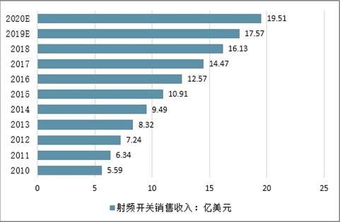 2010-2020年全球射频开关销售收入走势